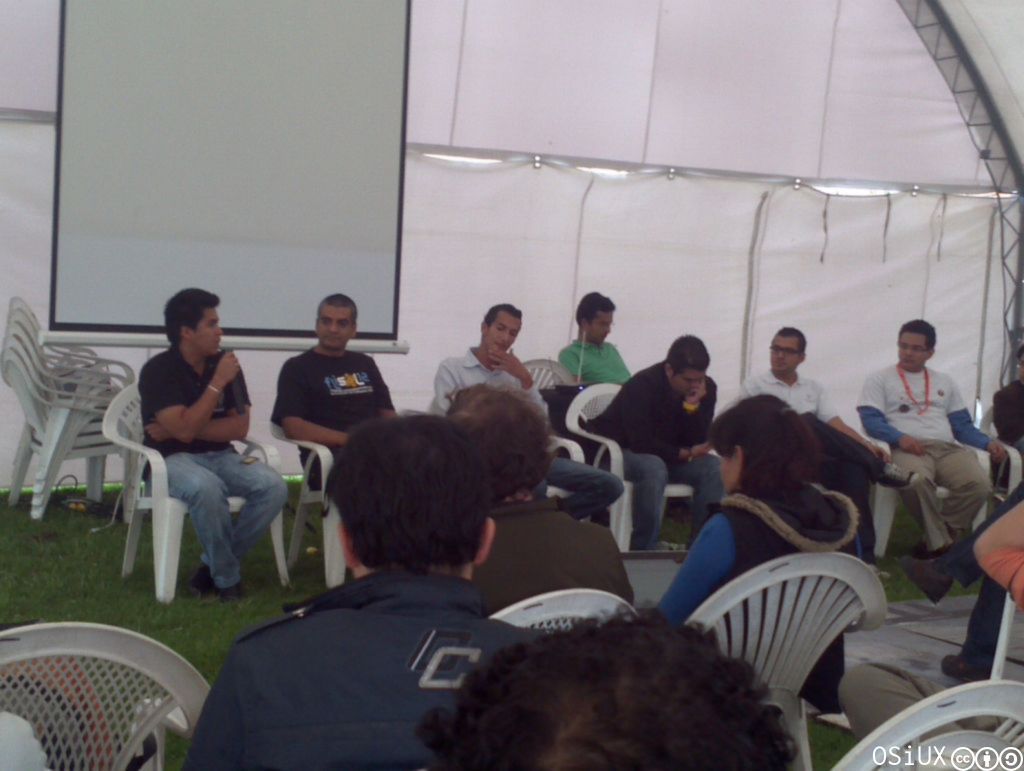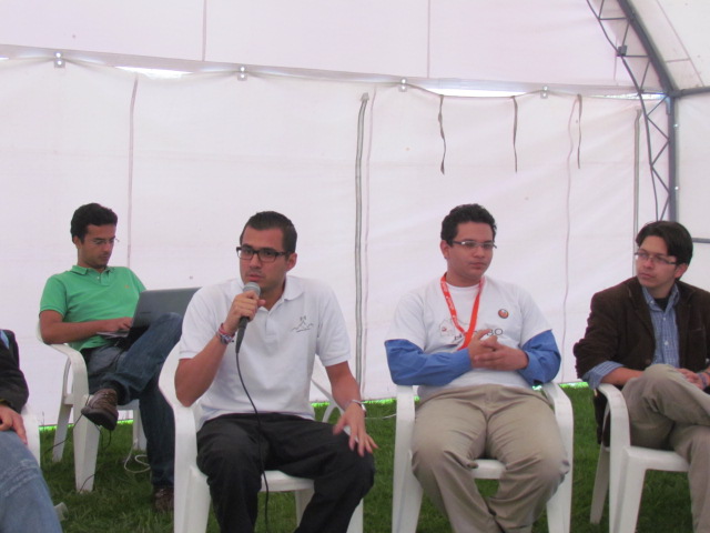 Mientras estaba hablando con Andrés Gómez de la Red Inalámbrica y Comunitaria de Bogotá 10, nuevamente la organización del evento me invitó a participar de un panel sobre Aportes a una Política Pública Tecnológica Libre en Bogotá junto a Concejales de Bogotá, y el resto de invitados internacionales: