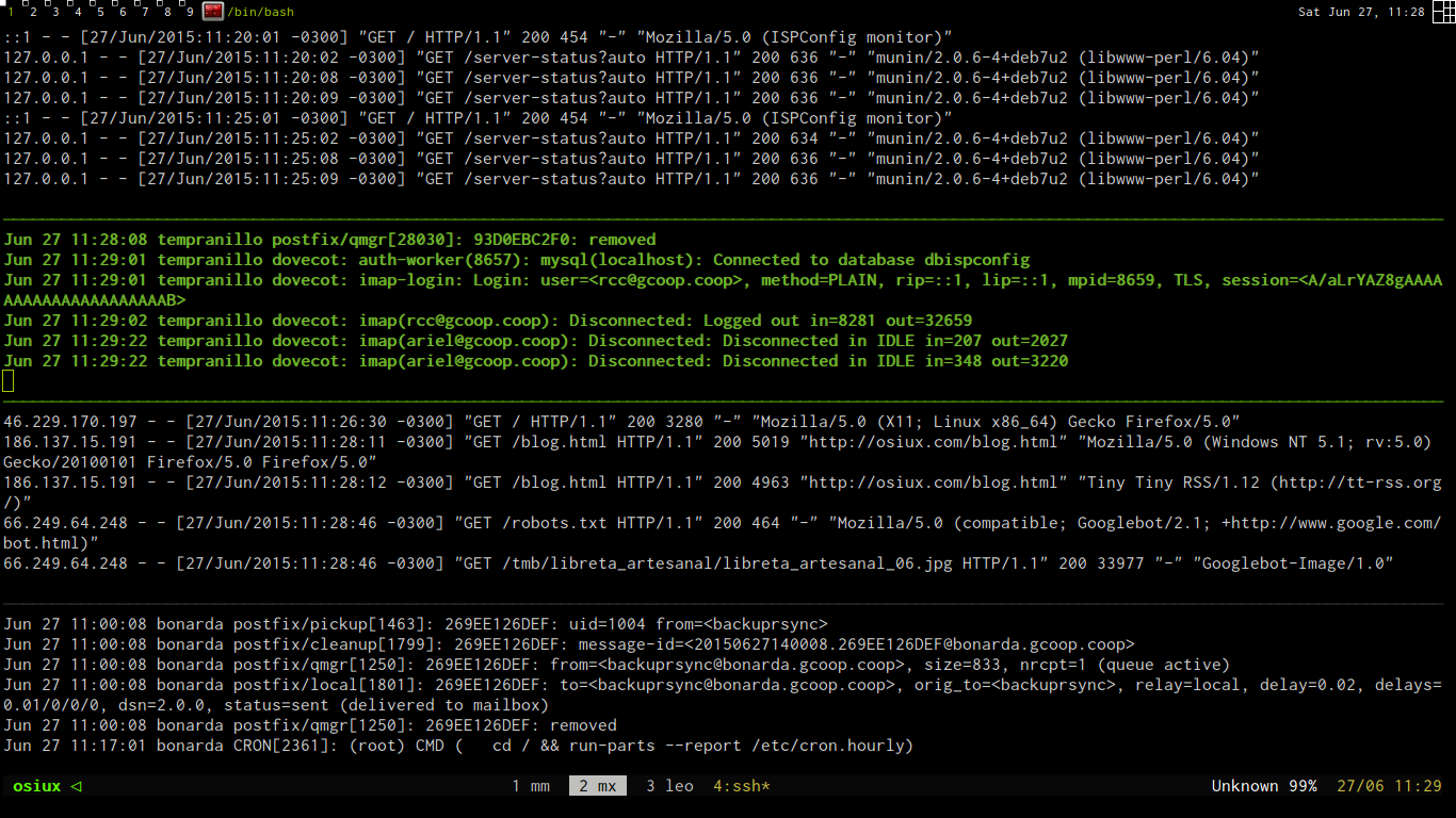 tmux, ya sea local combinando con awesome como remotamente mediante