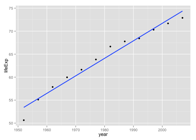 ## lm(formula = lifeExp ~ I(year - minYear), data = gDat, subset = country ==