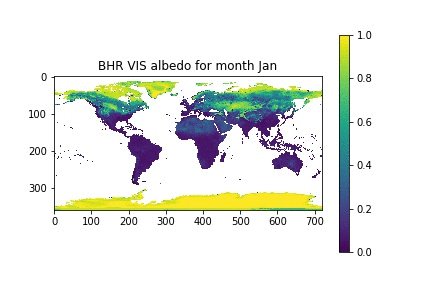 "You have all of the code you need above to be able to read a GlobAlbedo file for a given month and waveband in Python and save a picture in jpeg format, but to recap for `BHR_VIS`:\n"