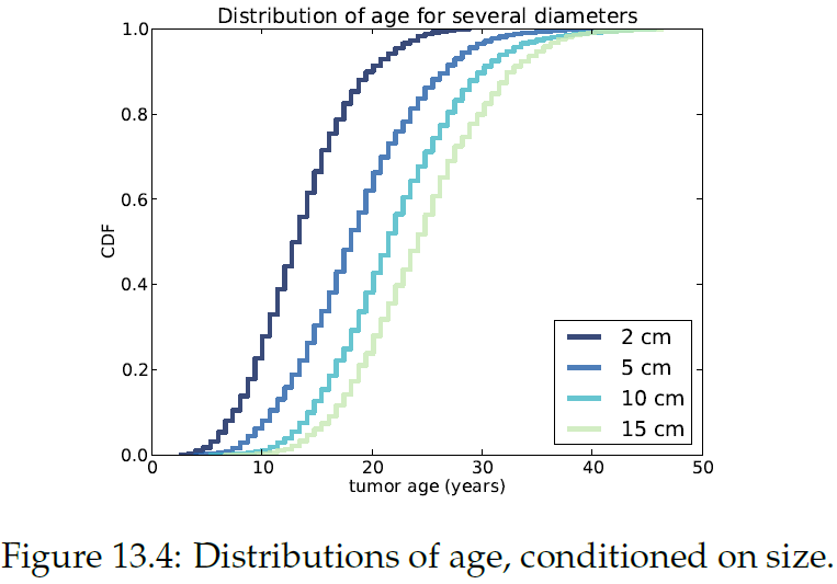 "Given the size of a tumor at time of diagnosis, it would be most useful to know the probability that the tumor formed before any given date; in other words, the distribution of ages.\n",