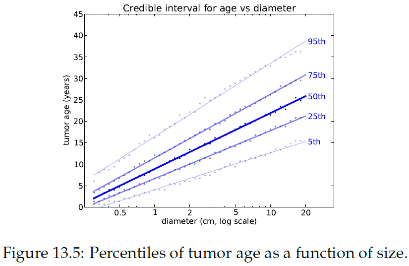 "이를 위해 age별로 종양 성장률을 시뮬레이션을 수행한 후, Bayesian 접근법에 따라 크기에 따른 age의 분포를 얻을 수 있음)"