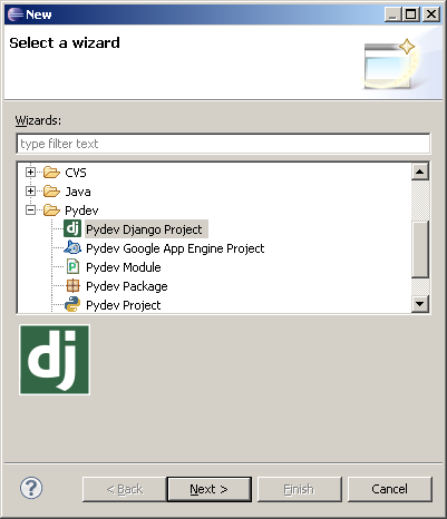 DjangoPre-requisitesTo get started with Django in PyDev, the pre-requisite is that Django is installed in the Python / Jython / IronPython interpreter you want to use (so, "import django" must properly work – if you're certain that Django is there and PyDev wasn't able to find it during the install process, you must go to the interpreter configuration and reconfigure your interpreter so that PyDev can detect the change you did after adding Django). If you don't have Django installed, follow the steps from http://www.djangoproject.com/. Note that this tutorial won't teach you Django. It'll only show how the Django integration is available in PyDev, so, if you're not familiar with Django, it's useful to learn a bit about how it works and then use this help to know how the PyDev Django integration can help you. A bit on internalsThe Django integration in PyDev works through 3 main configurations: 1. The project must be marked as a Django project inside of PyDev. 2. A DJANGO_MANAGE_LOCATION string substitution variable must point to the project-relative location of manage.py. 3. A DJANGO_SETTINGS_MODULE string substitution variable must contain the name of the settings module in that project. And that's it, with those properly configured, all the Django-related actions should work (provided the project is already configured as a Django project, there's an UI to configure those settings in the project properties: right-click your project > properties > PyDev - Django) Creating a new projectUse the new project wizard through Ctrl+N > PyDev Django Project to create a new Django based project.