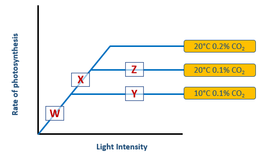 `]: [`Upper epidermis`], [`What is limiting the rate of photosynthesis at point Y?