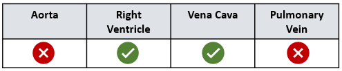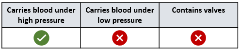 `]: [`Transports deoxygenated blood from the right ventricle to the lungs`], [`The statements are structures within an organism.