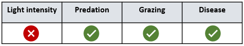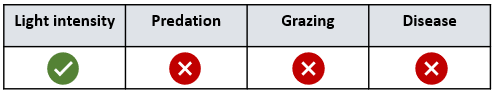 `]: [`More offspring`], [`Which of the following resources would plants NOT be in competition for?