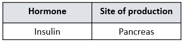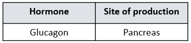 Which of the following identifies the name of the hormone produced and its site of production, in response to a decrease in blood glucose concentration?