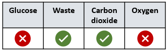 `]: [`Diffuses out of the cell`], [`Which term describes the condition at which an enzyme is no longer active?