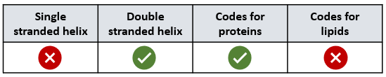 `]: [`Becomes turgid`], [`The bases on DNA bond in a complementary way.