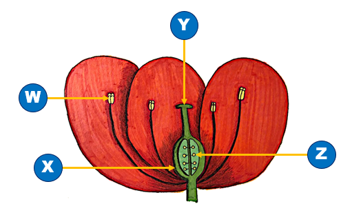 Which label identifies the site of production of the male gamete?