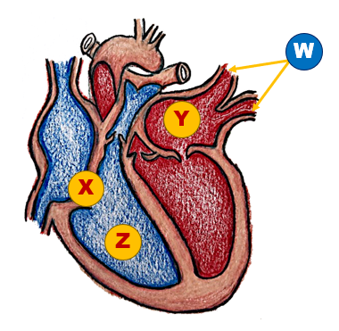 What structure of the heart is labelled 'W' below?