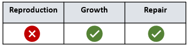 Which of the following correctly identifies the use of mitosis in the body?