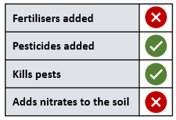 `]: [`Kills pests that eat the crops`], [`Which of the following are products typically released by fermentation in a fungal cell?