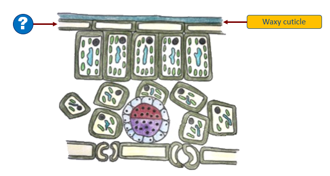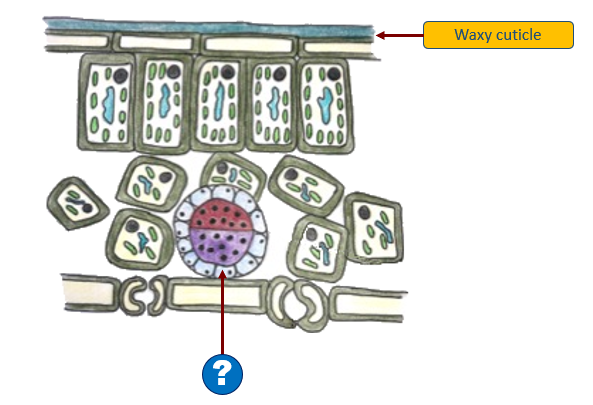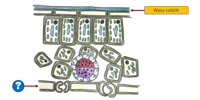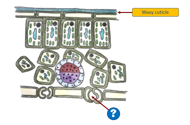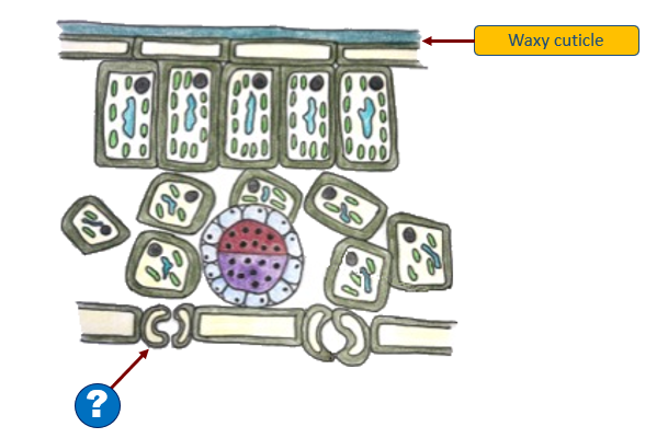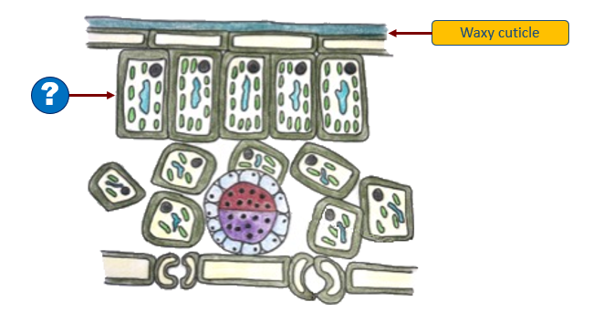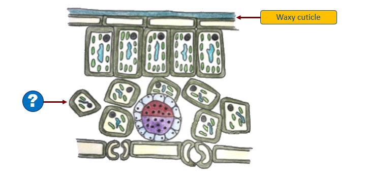 `]: [`Palisade mesophyll`], [`The diagram represents the structure of the leaf.
