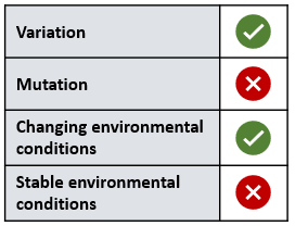 `]: [`An animal which only consumes plants`], [`What do species produce that put selection pressures on the environment and causes natural selection?