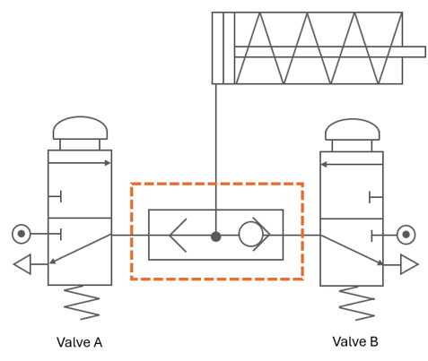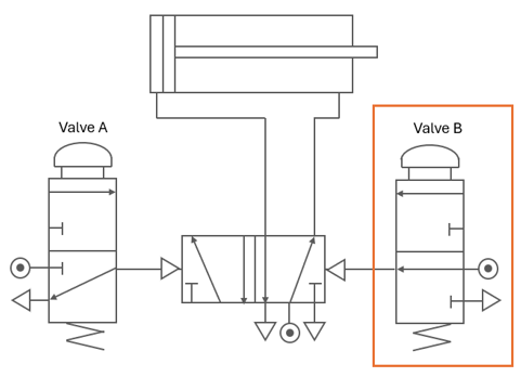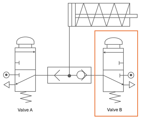 `]: [`The output is low.`], [`Which of the following truth tables show the correct single-acting cylinder for the diagram below?