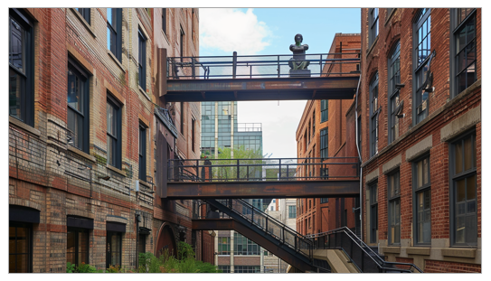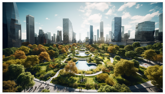 `]: [`Planning and overseeing the construction of roads, water supply, and drainage systems`], [`A footbridge is installed over a busy street, with a hanging advertising board.