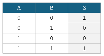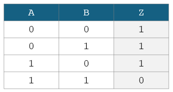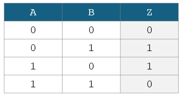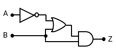 Which of the following show the Boolean equation for output Z in terms of inputs A and B?