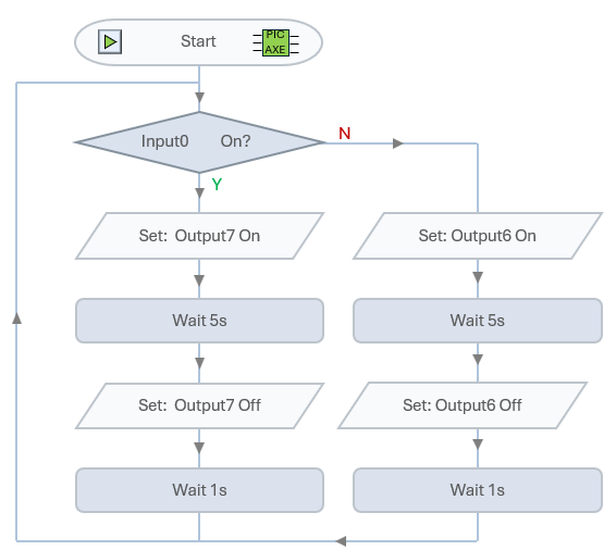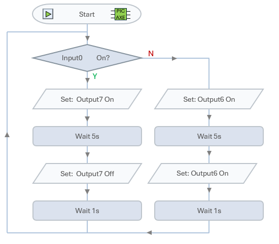 `]: [`>230 V`], [`A motor is connected to pin 6 (turning anticlockwise) and pin 7 (turning clockwise). The following flowchart is written to control the motor.