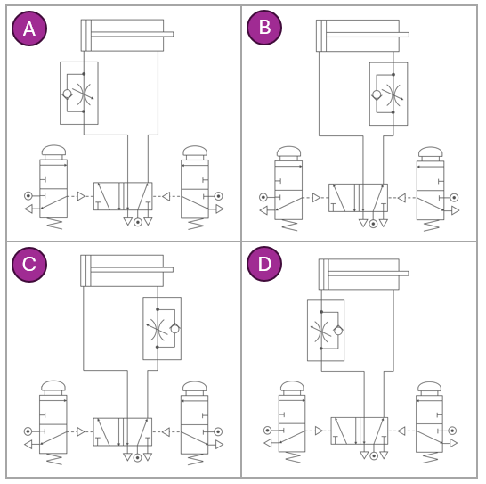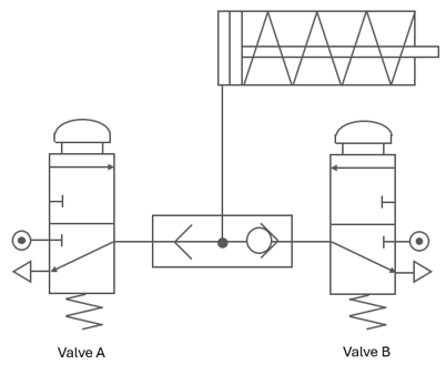 `]: [`It has two air inputs that control movement in both directions`], [`Which of the following statements is true about a single-acting cylinder in a pneumatic system?