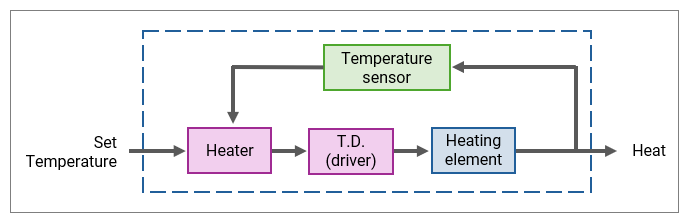 Below is a sub-system diagram of a heater which regulates its own temperature to ensure that it keeps a constant output temperature.