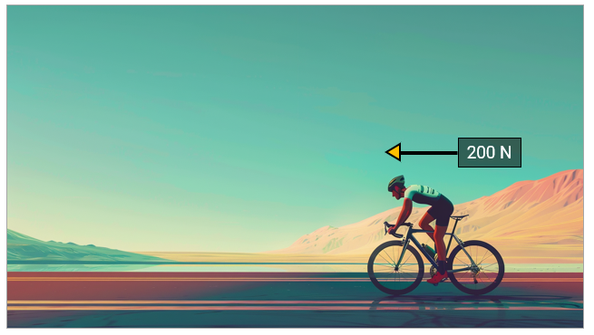 The car in the image below is travelling with a forward force of 350N, against the force of friction on the road of 40N, and an air resistance of 150N.