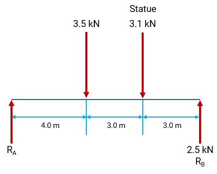 A simplified free body diagram of the footbridge and hanging advertising board is shown below.