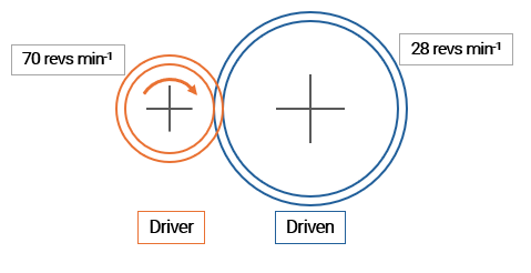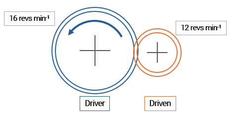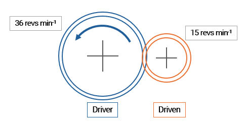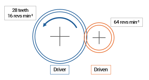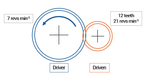 `]: [`In parallel with the component`], [`A gear mechanism has an input speed of 60 revs min−1 and an output speed of 20 revs min−1.