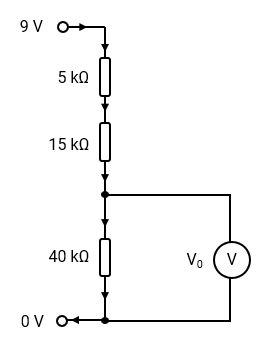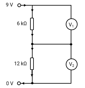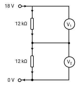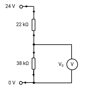 Determine the voltage at V2 in the circuit shown.