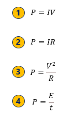 `]: [`The rate at which electrical energy is transferred`], [`An air conditioner has a power rating of 1725 W. If the air conditioner draws 7.5A of current from the supply, calculate the voltage required.