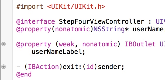 通过Outlet插座,按住Ctrl+控件拖拽到对应的ViewController的.h文件中可以将IB中的组件添加到代码里,方便代码的操作。包括添加属性(IBOutlet)和相应方法(IBAction)。