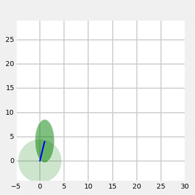 "In the last chapter we learned to use a multivariate Gaussian. For example, if we wanted to specify a position of 10.0 m and a velocity of 4.5 m/s, we would write:\n",