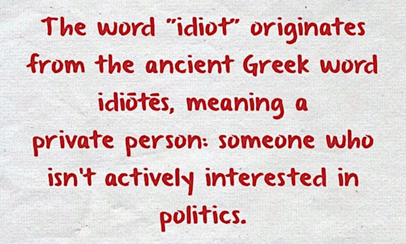 In questo ambito, il termine "idiota" non è affatto un giudizio morale o lo sbotto di una frustrazione personale, deve essere alla stregua di un termine tecnico che affonda le sue radici nella cultura dell'antica Grecia e quindi definisce in maniera "tecnica" questo tipo di soggetti. Inutile sottolineare che in questo contesto ci si trova ad affrontare un ulteriore paradosso: la cultura umanistica meno conosciuta ma meglio padroneggiata dagli STEM, perché correttamente contestualizzata.