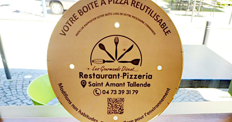 > Un pizzaiolo (francese, NdR) ha progettato una scatola per pizza riutilizzabile Queste scatole sono già realizzate in cartone riciclabile, ma lui ha voluto fare un passo in più ricordandoci che il miglior rifuto è quello che non esiste `[...]` Come ogni progetto d'avanguardia, costa molto e,poiché l'ecologia è afare di tutti, ho deciso di vendere queste scatole a 5 euro (contributo alle spese). Quando compri una scatola, ti diamo un timbro sulla tua carta fedeltà. Poi, quando vieni a ritirare le pizze, ci riporti le scatole e noi ci mettiamo dentro le tue pizze, così limitiamo il consumo di cartone e i nostri rifuti.