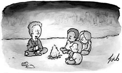 Citing the man in the cave telling the goodnight fairy tale to new-savages era post financial communism
