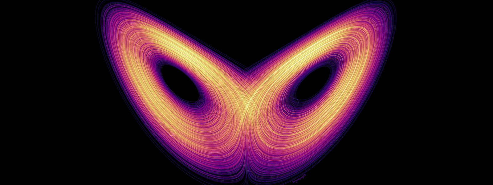- L'immagine mostra il diagramma delle traiettorie di un classico esempio di "Attrattore Strano" così come presentato da Edward N. Lorenz nel 1963, all'interno dell'articolo "Deterministic Nonperiodic Flow" pubblicato sul Journal of Atmospheric Sciences, un concetto fondamentale nella teoria del caos.