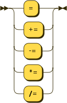 assignop ::= '=' | '+=' | '-=' | '*=' | '/='