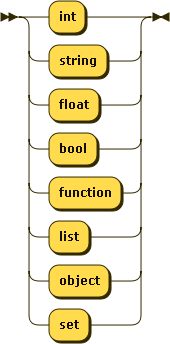 type ::= 'int' | 'string' | 'float' | 'bool' | 'function' | 'list' | 'object' | 'set'