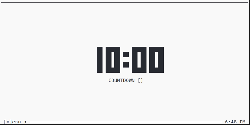 -m, --mode Mode to start with. [possible values: countdown, timer, pomodoro]