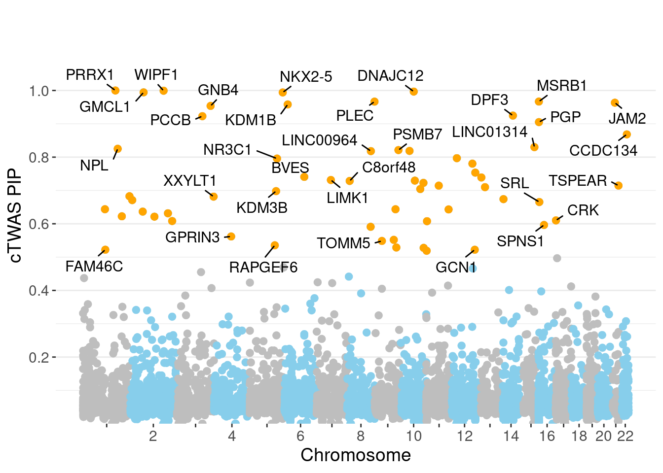 Genes with highest PIPs