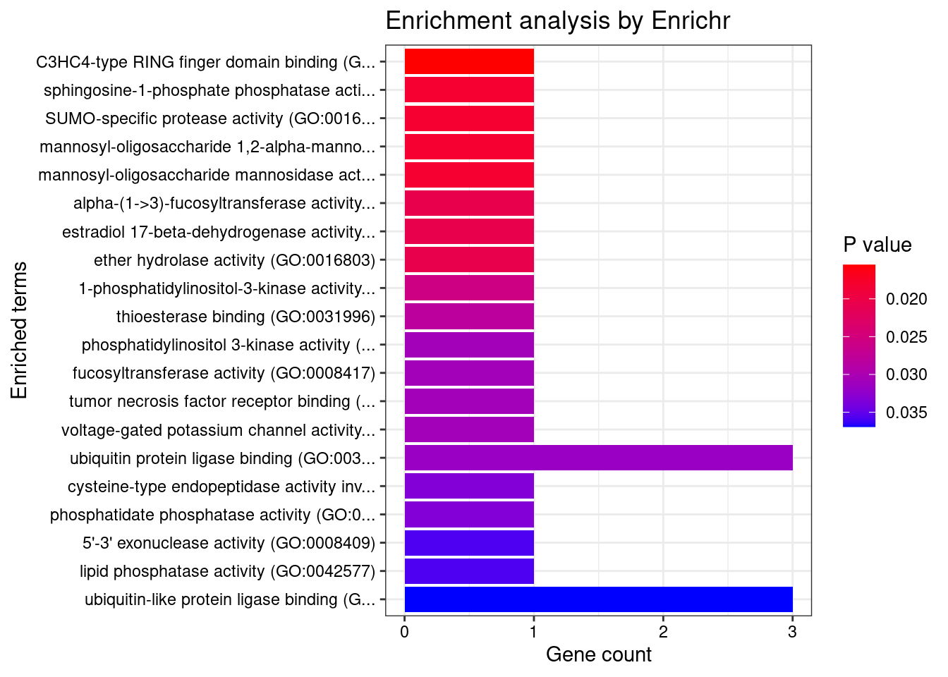 Warning in oraEnrichment(interestGeneList, referenceGeneList, geneSet, minNum =
