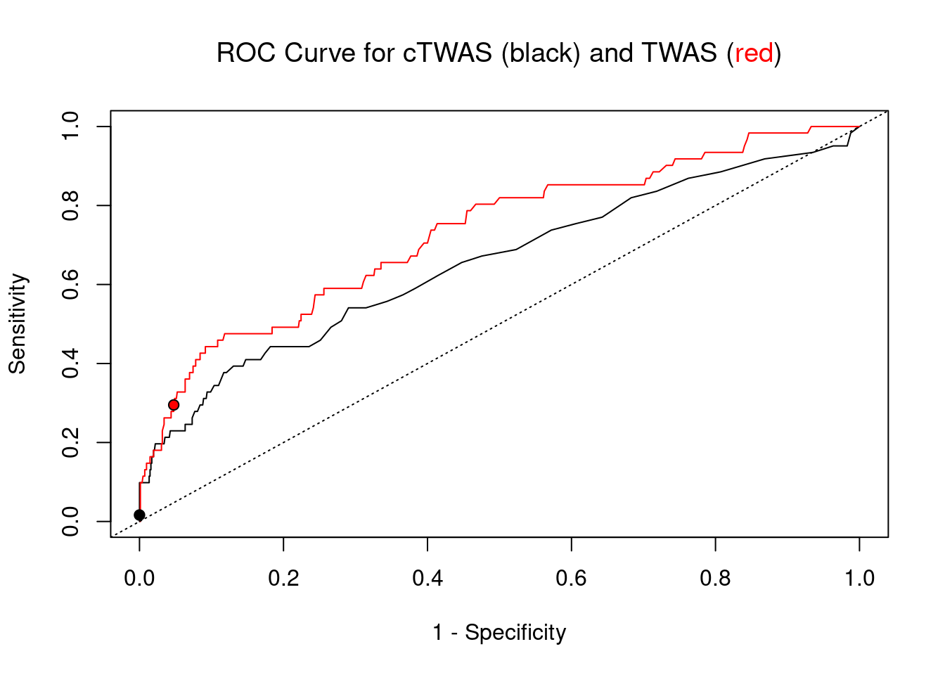 points(1-specificity_plot["TWAS"], sensitivity_plot["TWAS"], pch=21, bg="red")