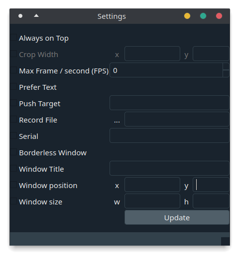 The GUI is built with the help of `PyQt5`, It includes all the important command line functions that `scrcpy` can support. Along with the *checkboxes* on the main *sceen*; there is also additional settings in the settings menu