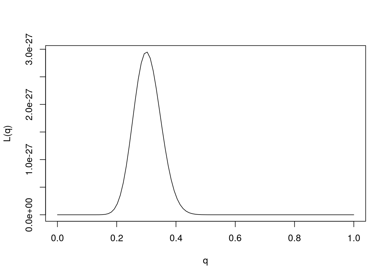 L= function(q){q^30 * (1-q)^70}