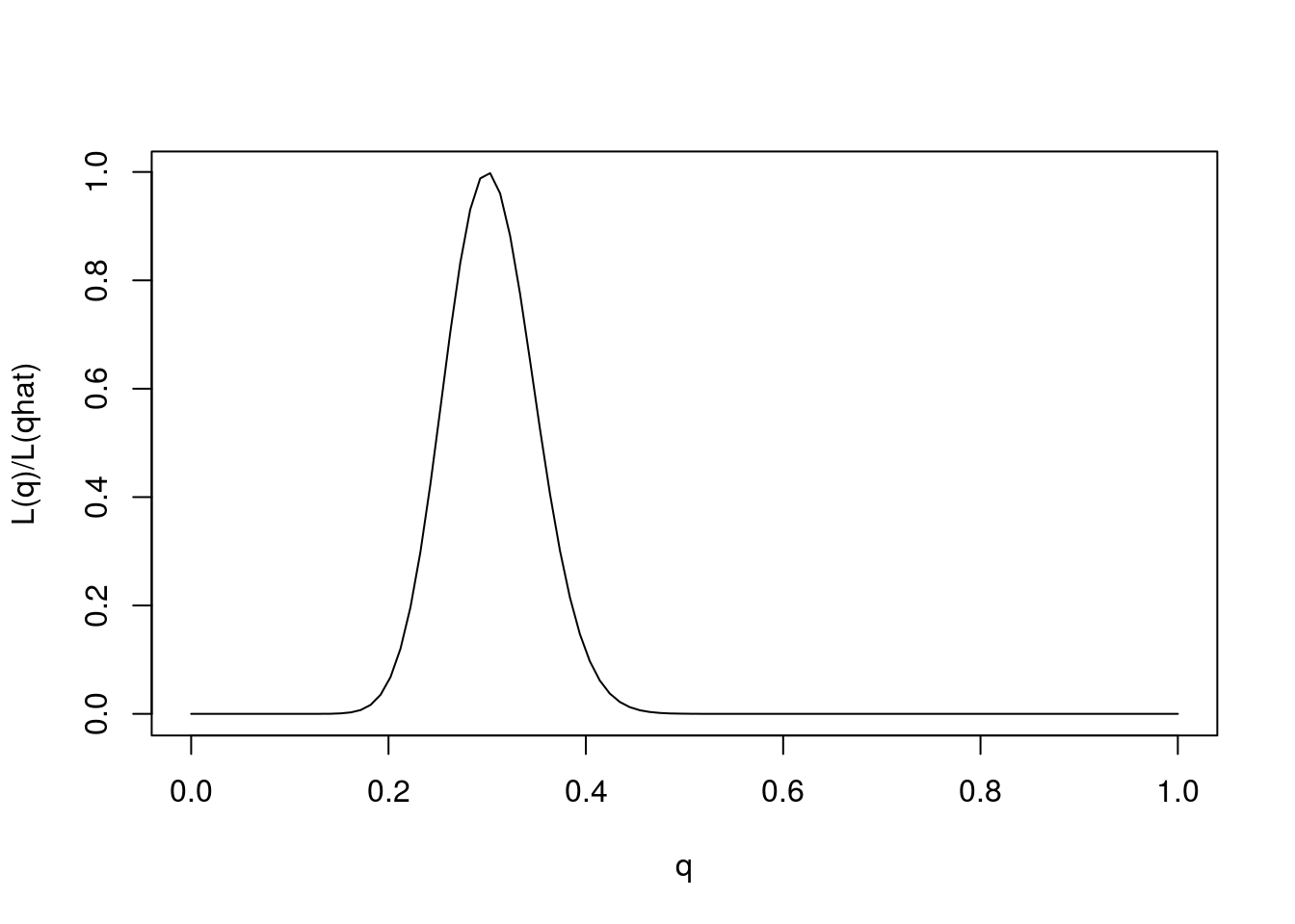 plot(q,L(q)/L(0.3),ylab="L(q)/L(qhat)",xlab="q",type="l")