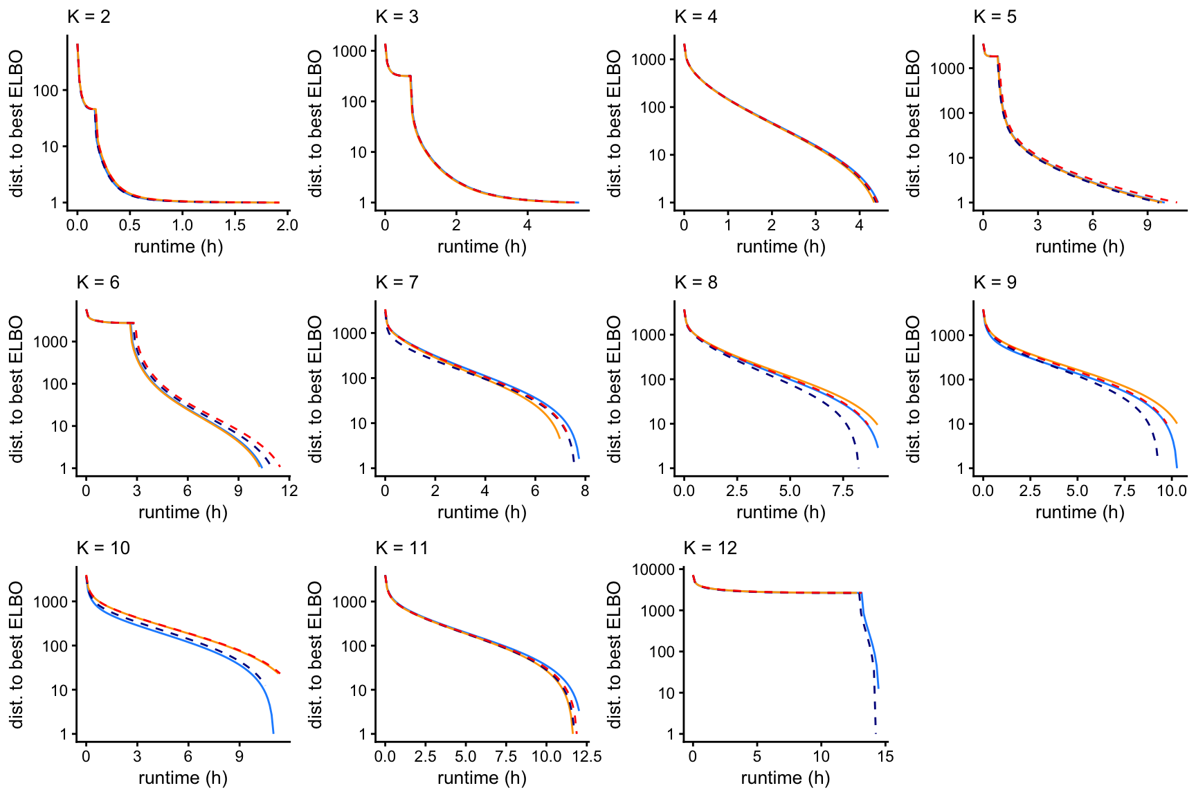 labs(x = "runtime (h)",title = paste("K =",k)) +