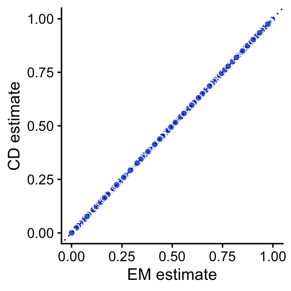 labs(x = "EM estimate",y = "CD estimate") +