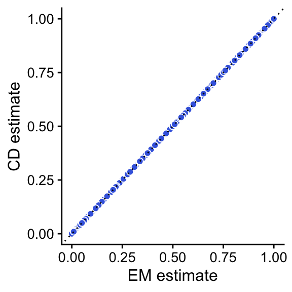 labs(x = "EM estimate",y = "CD estimate") +