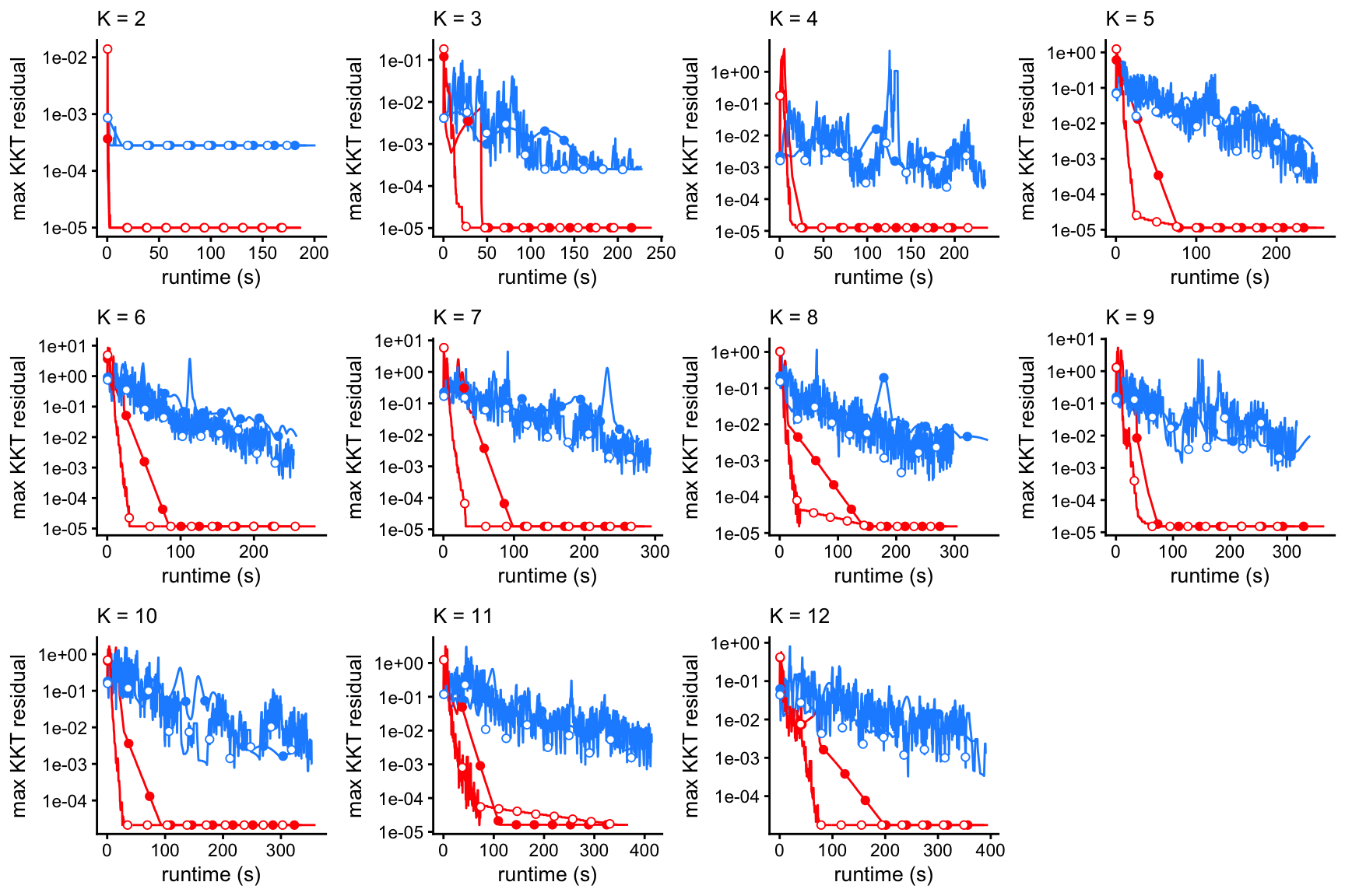 labs(x = "runtime (s)",title = paste("K =",k)) +