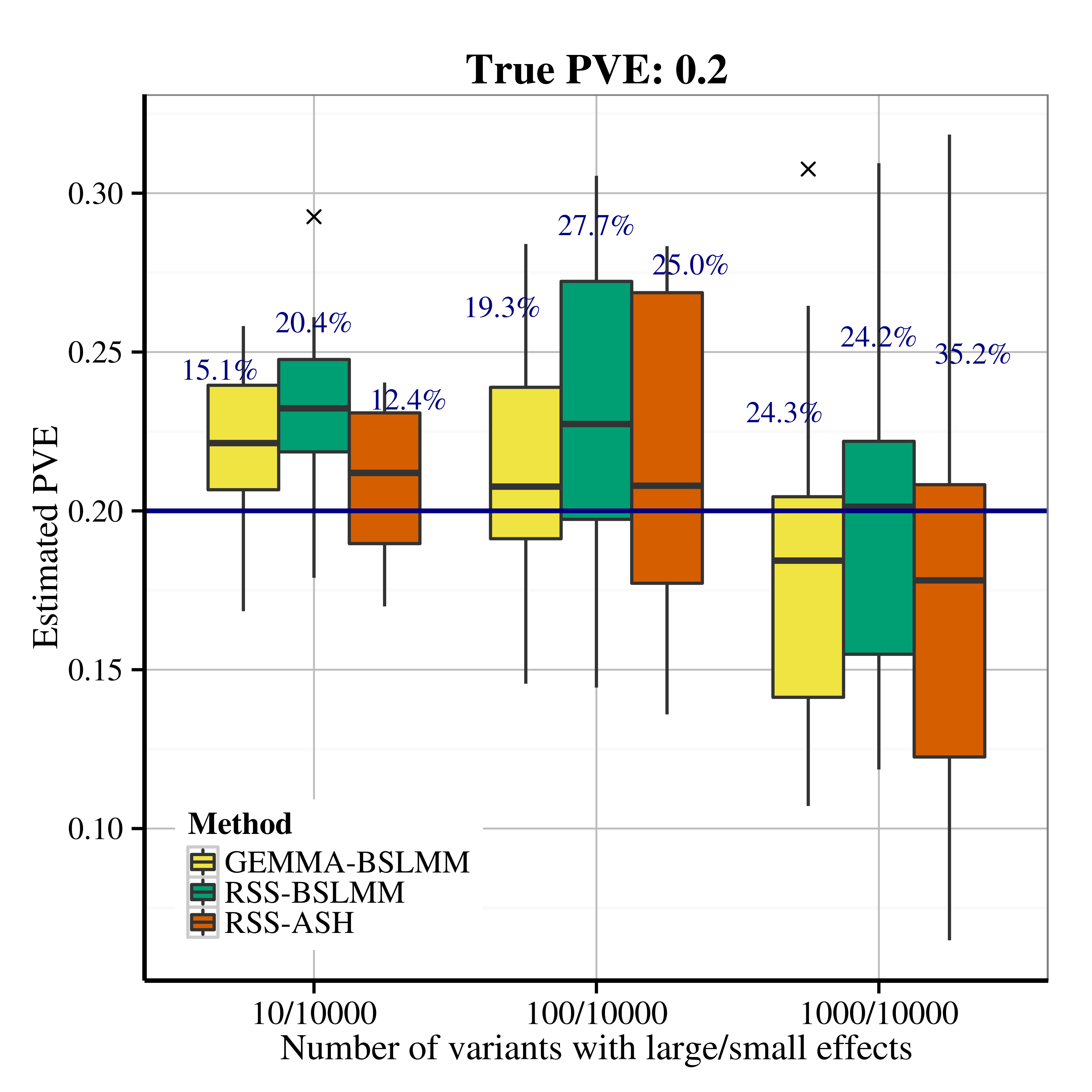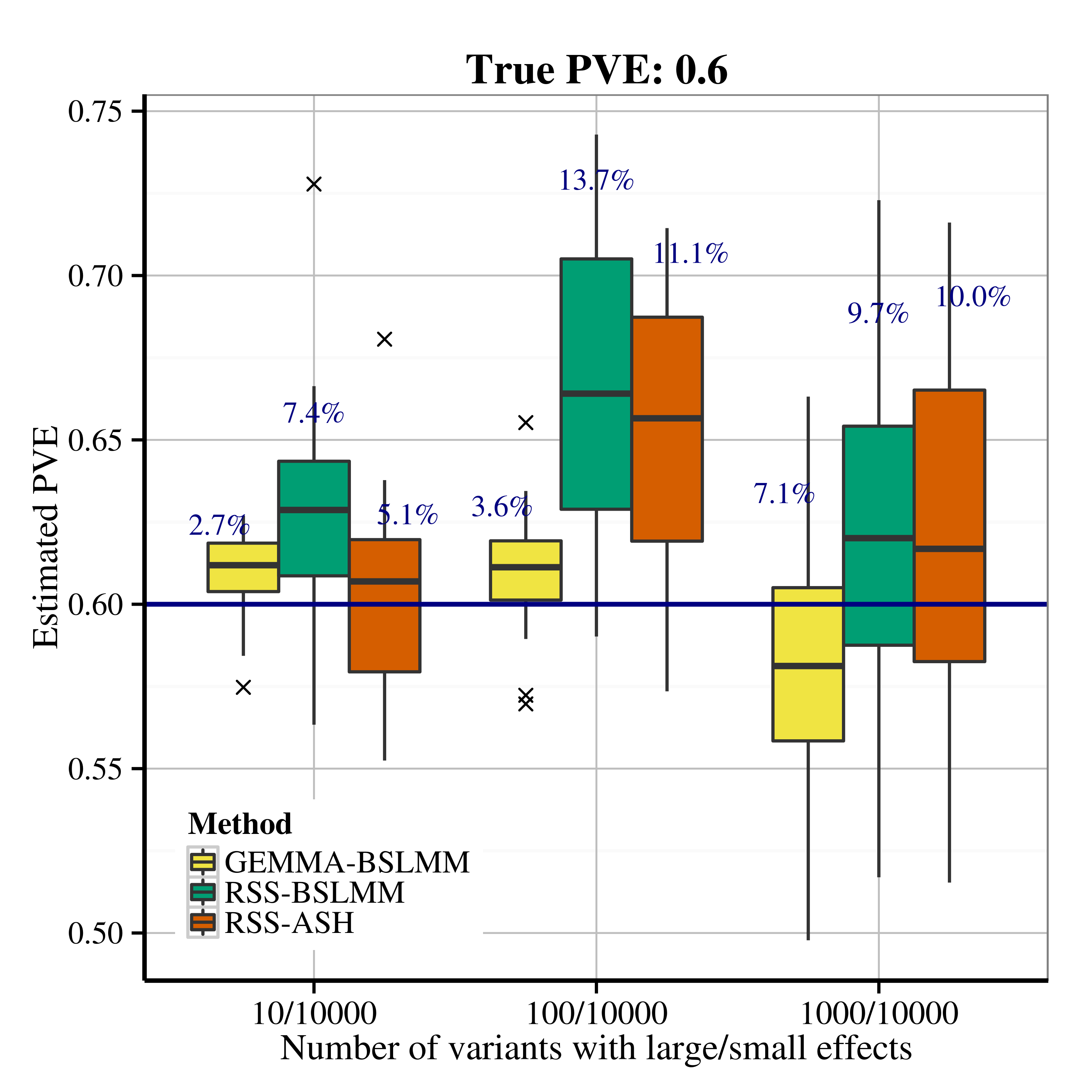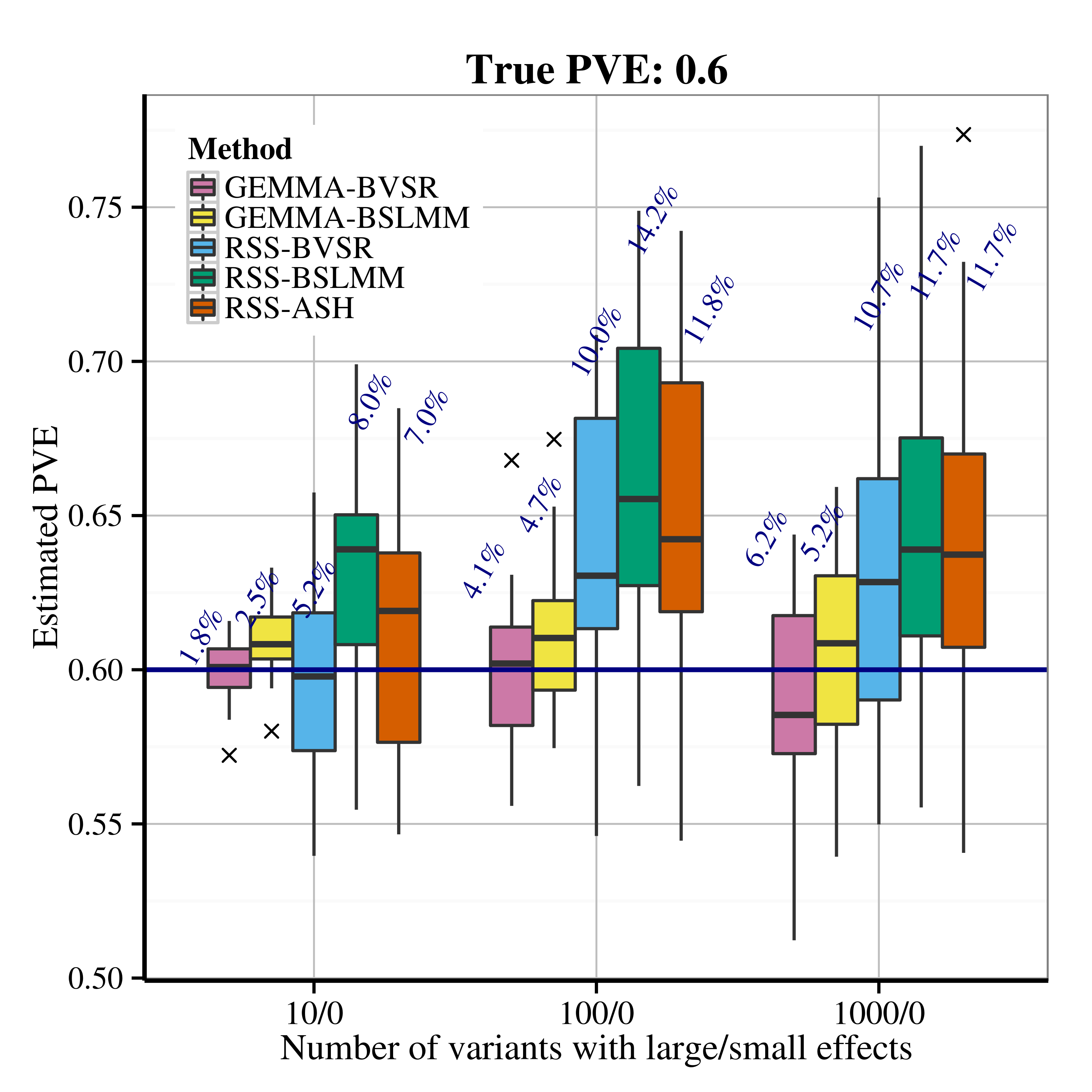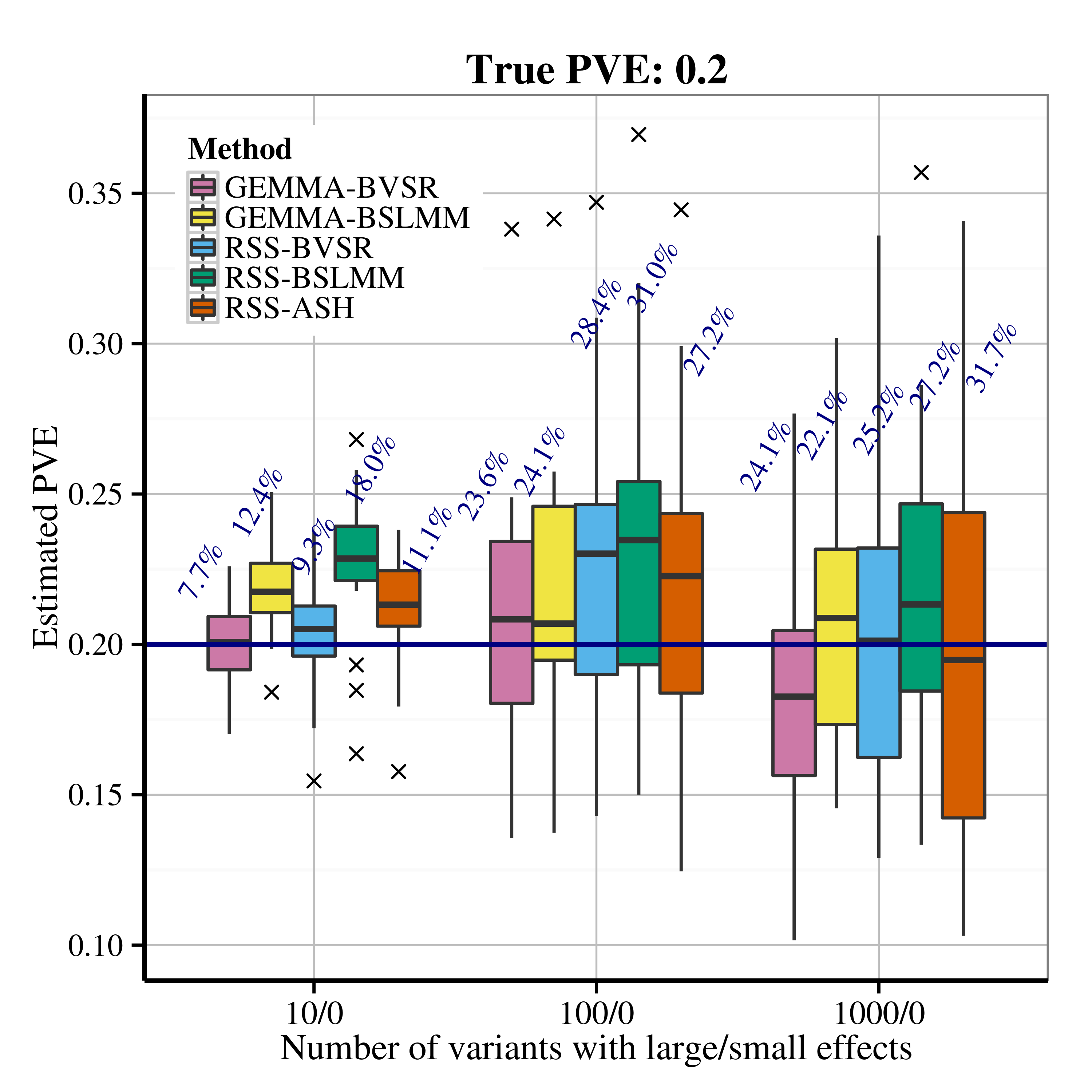 After applying RSS methods to these simulated data, we obtain the following PVE estimation results.